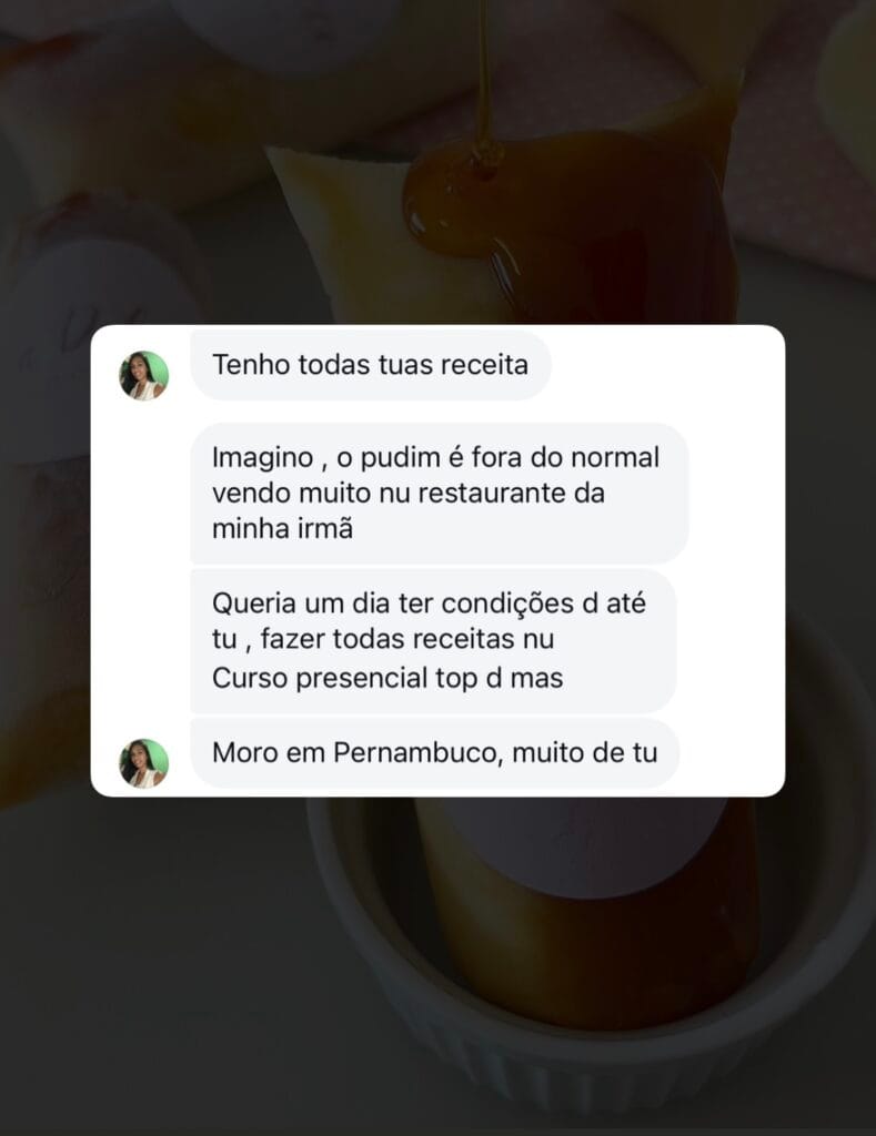Comecei vendendo bolos de pote e, posteriormente, decidi me desafiar com receitas mais avançadas e fiquei encantadas com as receitas com Pudim.