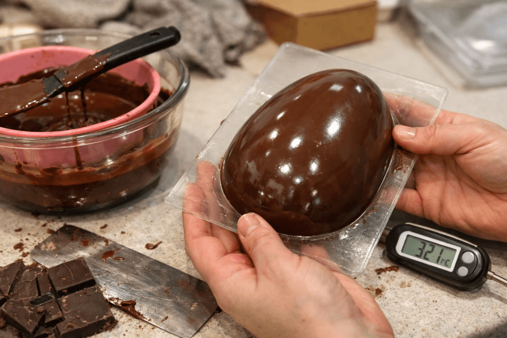 O Guia da Temperagem Perfeita mostra o passo a passo exato para você atingir o ponto certo do chocolate e nunca mais ver seus ovos suando, manchando ou derretendo.