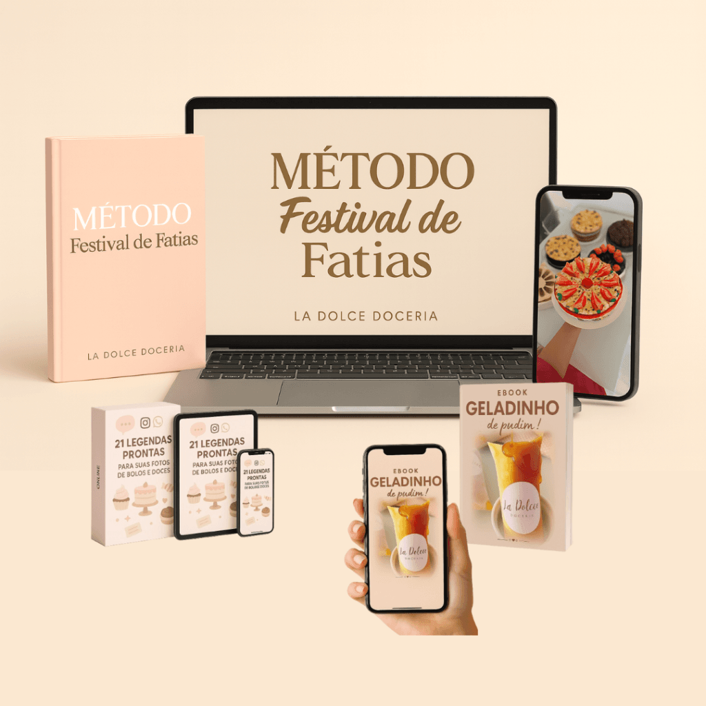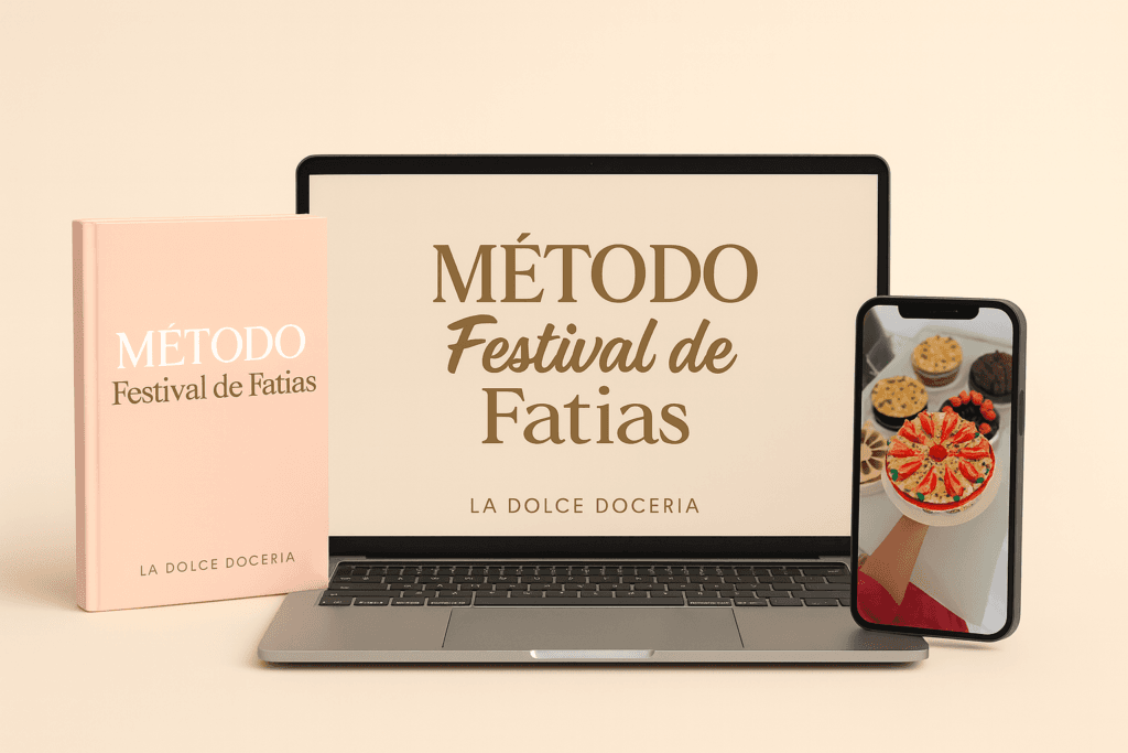 Hoje decidi transformar tudo isso em um treinamento completo, onde ensino o passo a passo para você produzir um Festival de Fatias irresistível, do jeitinho que vendo aqui na confeitaria e que se esgota sempre.