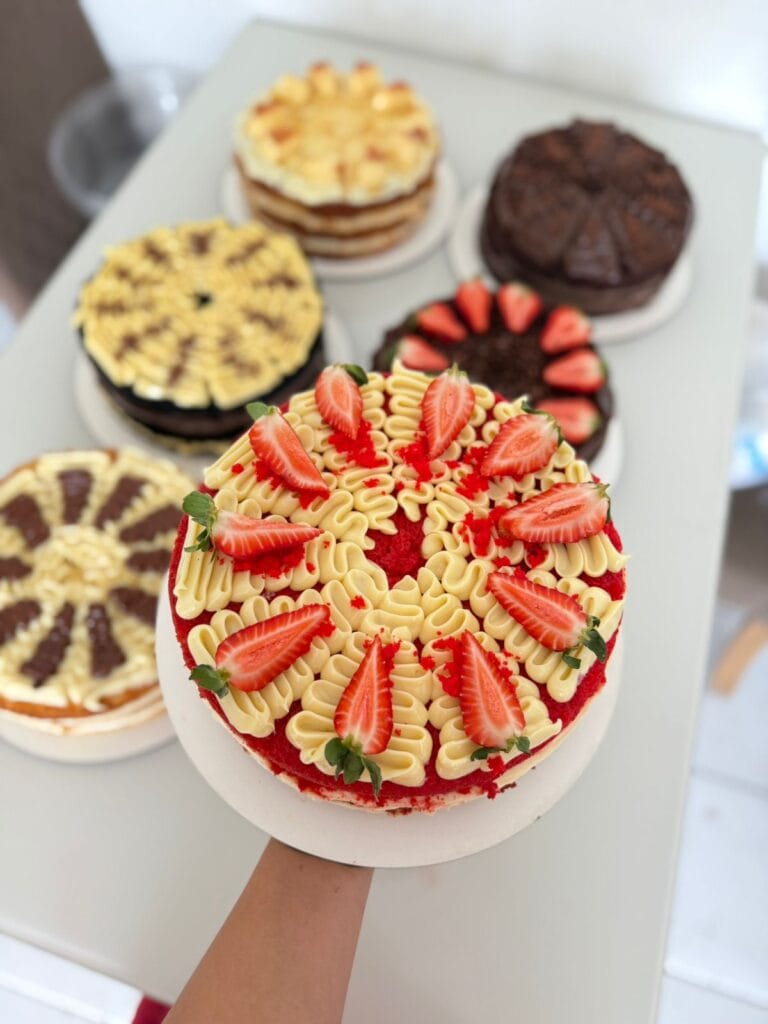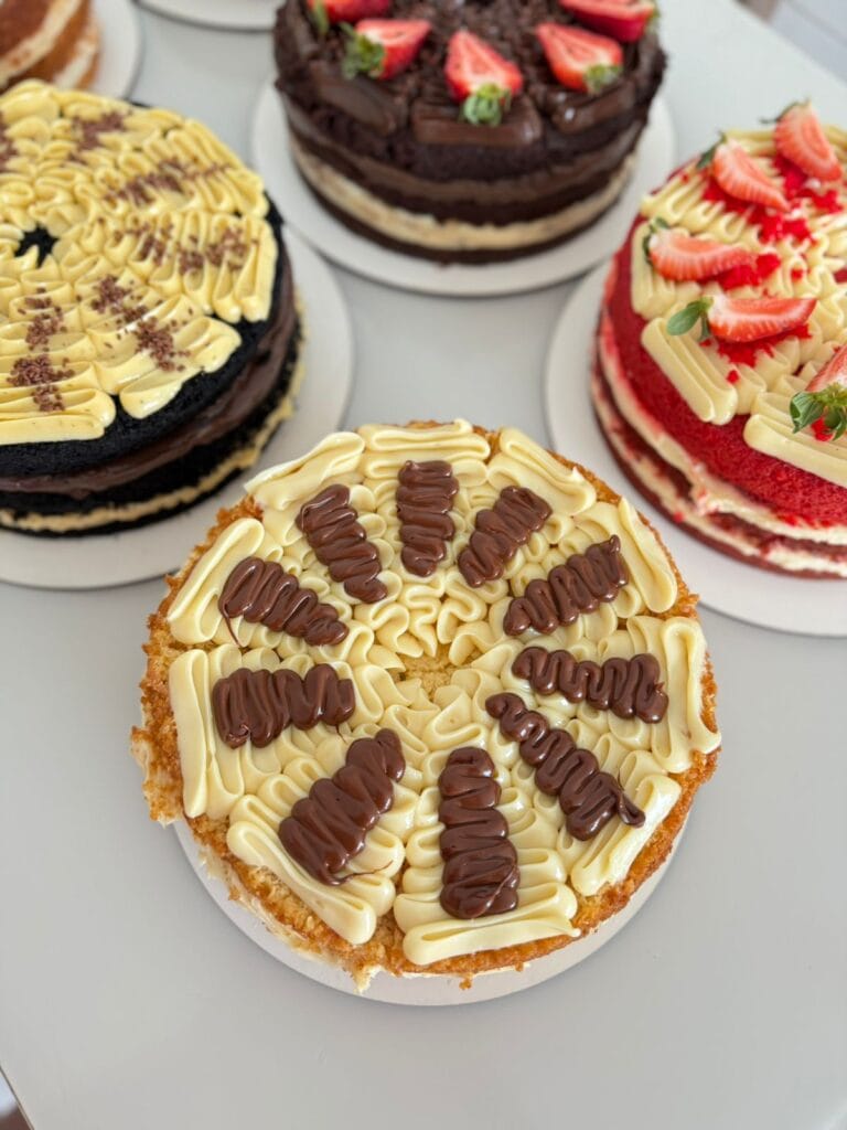 Foram vários testes, erros, acertos até chegar em um método de produção de fatias com padronização perfeita: massa úmida, recheios cremosos, camadas impecáveis e uma apresentação que faz qualquer cliente desejar na primeira olhada.