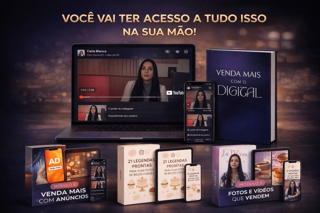 No método "Venda mais com o Digital" você receberá um material inédito com aulas curtas e práticas pra você começar hoje mesmo!